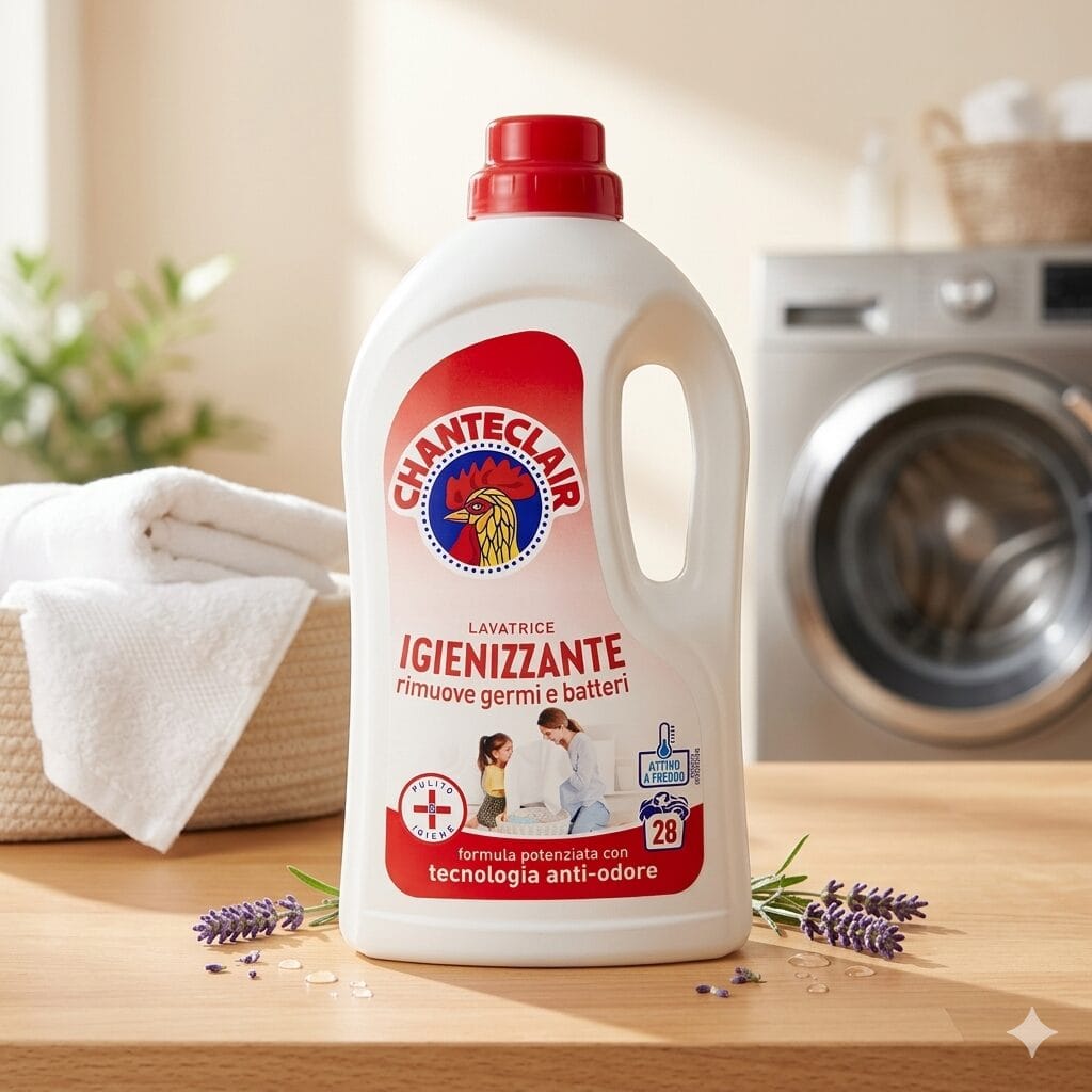 🧼 Chanteclair Detersivo Igienizzante to płynny detergent, który gwarantuje nie tylko czystość, ale i higienę każdego prania. Dzięki innowacyjnej formule skutecznie eliminuje zarazki i bakterie, usuwa uporczywe plamy i pozostawia tkaniny świeże i pachnące – nawet przy niskich temperaturach!