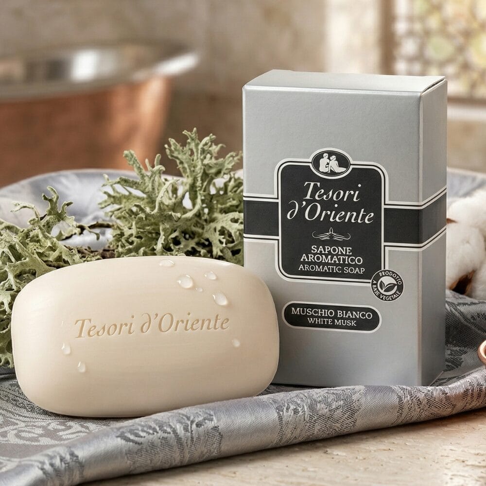 Z Tesori d'Oriente mydło Muschio Bianco każdy prysznic zamienia się w niezapomniane, aromatyczne doświadczenie pełne magii!