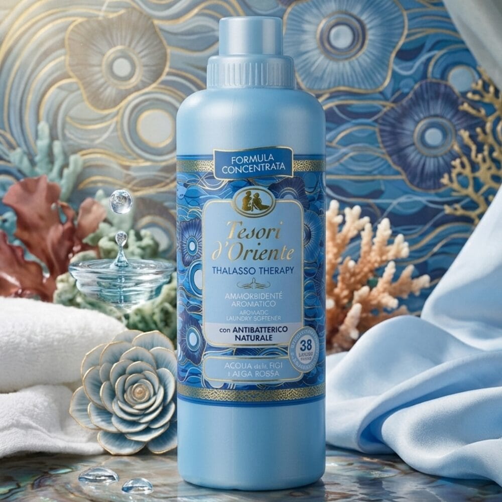 Tesori d'Oriente Thalasso płyn do płukania 760ml sprawia, że ubrania są miękkie, pachnące i otulone nutą luksusowego, włoskiego aromatu.