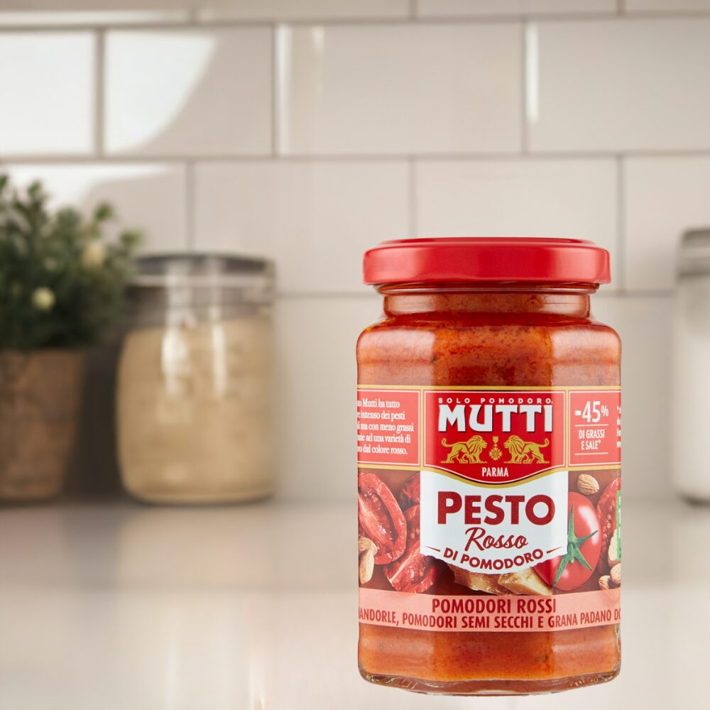 Pesto Rosso Mutti 12 x 180 g – aromatyczne czerwone pesto z włoskich pomidorów. Lekka receptura, autentyczny smak, idealne do makaronów i sałatek! 🍅🇮🇹